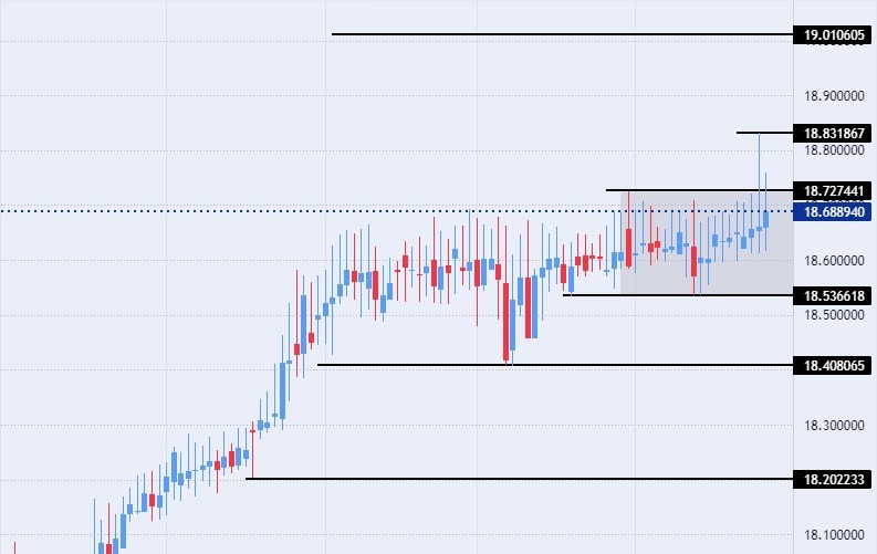 - Place a stop loss point to close below the 18.25 support level.